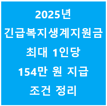2025년 긴급복지 생계지원금 최대 1인당 154만 원 지급 조건 정리